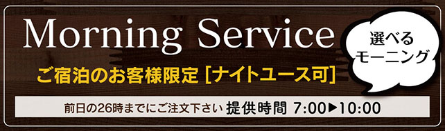 • ご宿泊のお客様にはモーニングサービスをご用意致します。完全予約制となっておりますので、AM2:00までにフロントまでご注文ください。